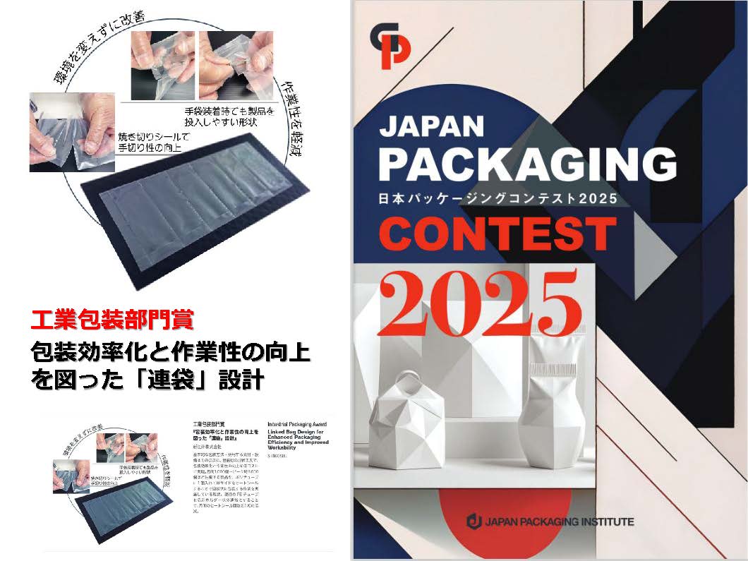 公益社団法人 日本包装技術協会が主催する「2025日本パッケージコンテスト」において、 「包装効率化と作業性の向上を図った「連袋」設計」が、工業包装部門賞を受賞した事をお知らせいたします。